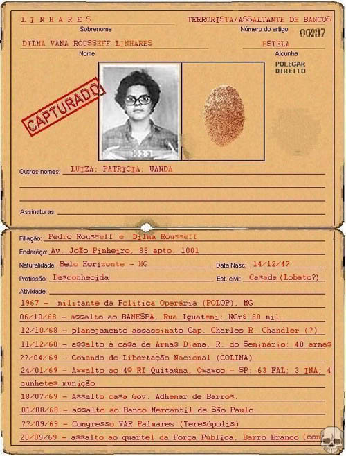 Dilma and her fellows receive substantial allowances for life because they have been arrested. The family of people whom they have killed or mutilated get nothing . She climbed to the top inside the government because she is a communist and Lula ass kisser. |